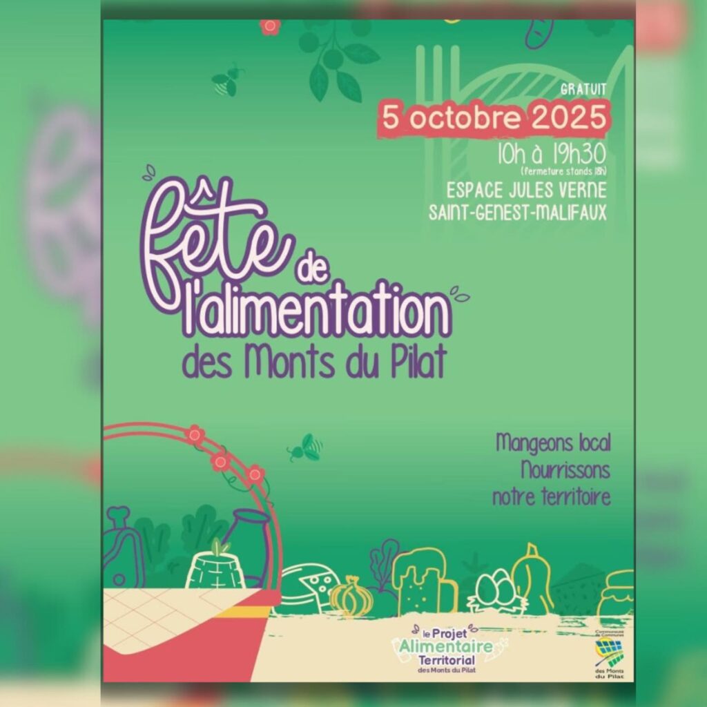 Dimanche 5 octobre, les Monts du Pilat accueilleront la Fête de l’Alimentation à Saint-Genest-Malifaux. Cet événement convivial met à l’honneur le partage, la découverte et la sensibilisation autour de l’alimentation durable et du bien-manger.